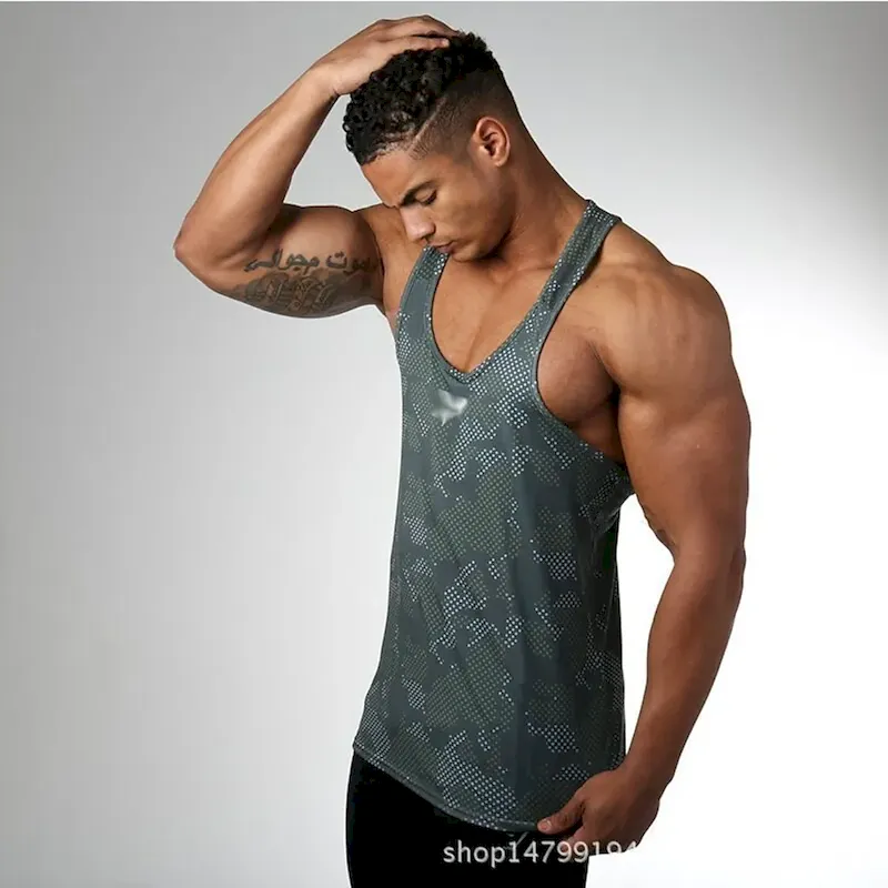 men muscle fitness gym stringer tank tops bodybuilding workout sleeveless shirts (camo blue, us medium(tag xl))