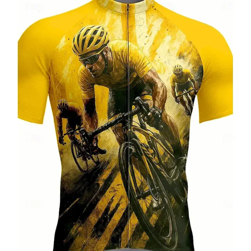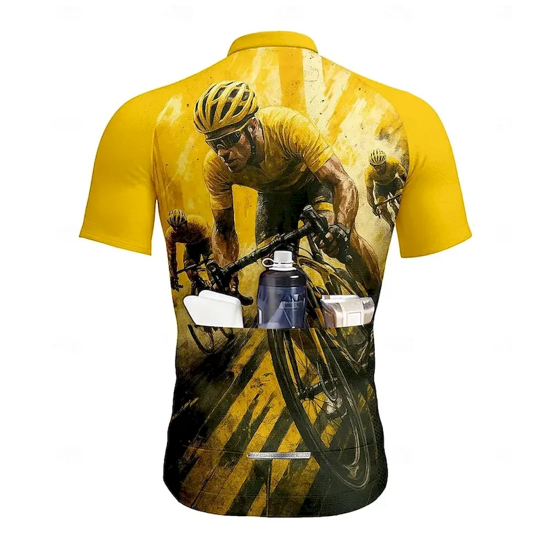 Men’s Cycling Jersey Graphic Short Sleeve Bike Jersey Top with 3 Rear Pockets UV Resistant Quick Dry Front Zipper Reflective Strips Sports Yellow Clothing Apparel