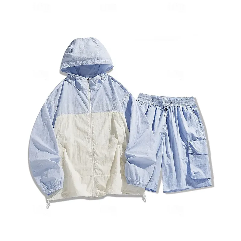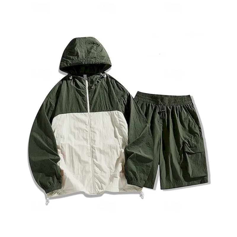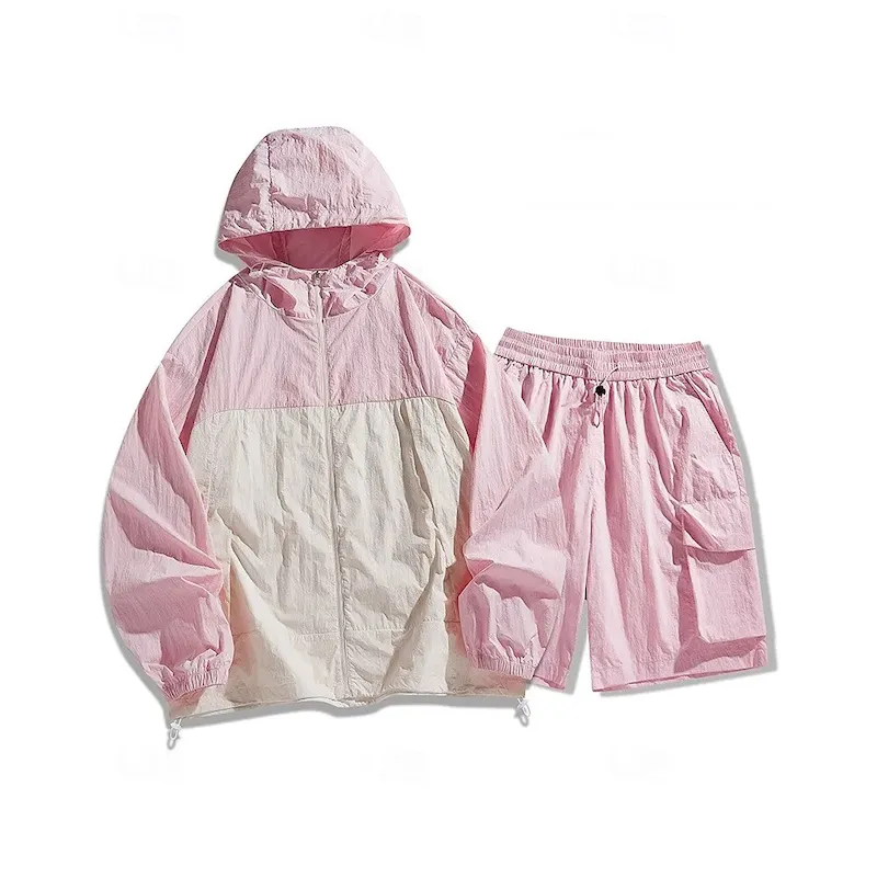 Men’s Tracksuit Zip Up Sweatshirt Track Pants Hooded Zipper Pocket Color Block Clothing Suit Summer Black Pink Fishing Hiking Outdoor Sun Protection Lightweight Breathable Long Sleeve Sport Activewear