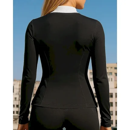 Women’s Running Top Running Shirt Full Zip Long Sleeve Top Graphic Sun Protection Lightweight Breathable Tennis Golf Running Sportswear Activewear Black White