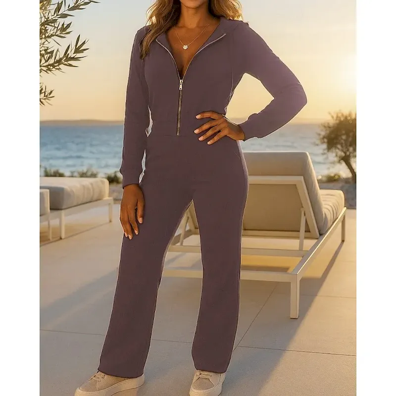 Women’s 2 Piece Outfits Lounge Sweatsuit Zip Up Solid Colored Clothing Suit Fall Black Wine Vocation Outdoor Travel Lightweight Fashion Long Sleeve Sport Activewear Micro-elastic Regular Fit
