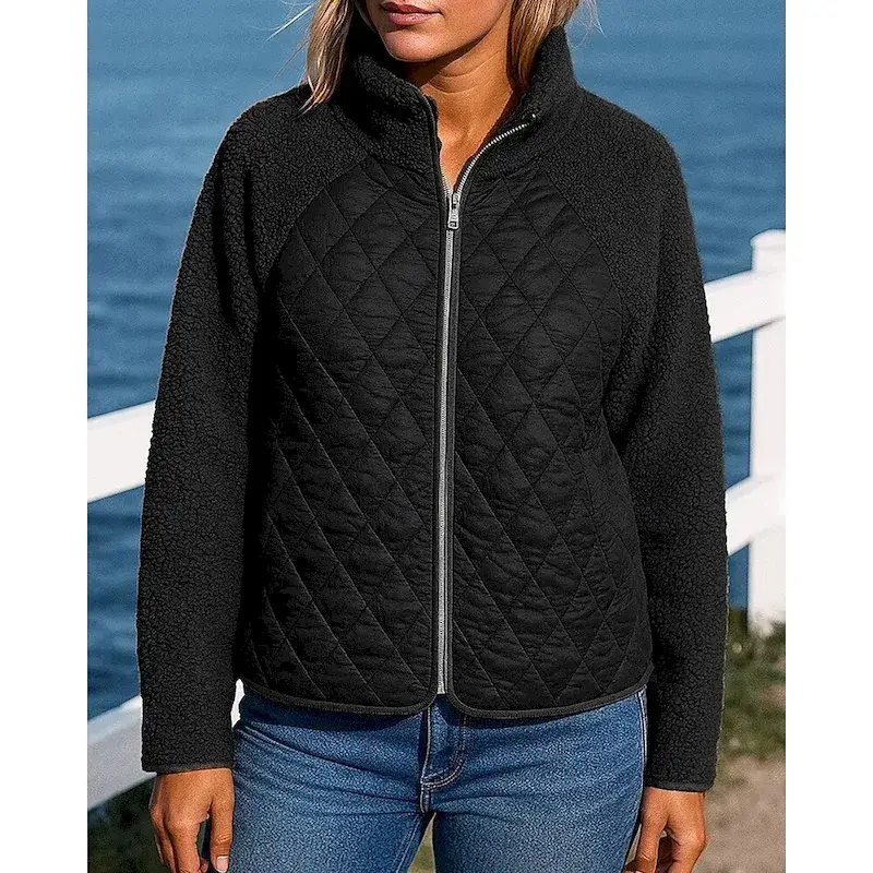 Women’s Fleece Jacket Winter Coat Puffer Jacket Zip Up Long Sleeve Top Athleisure Solid Colored Windproof Warm Outdoor Travel Sports Sportswear Activewear Black White Pink