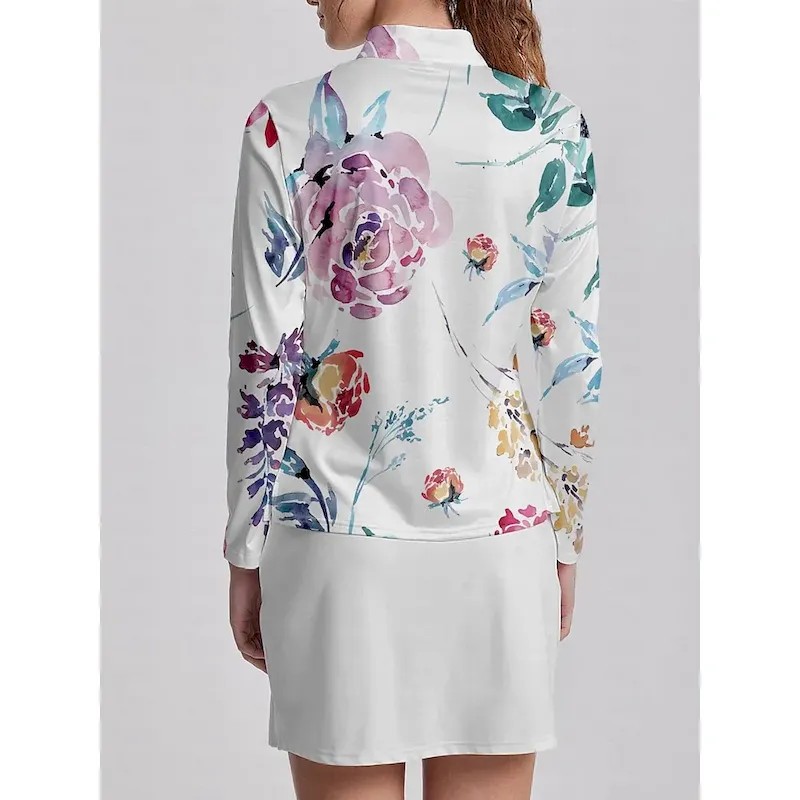 Women’s Golf Polo Shirt Pink Long Sleeve Sun Protection Top Floral Fall Winter Ladies Golf Attire Clothes Outfits Wear Apparel