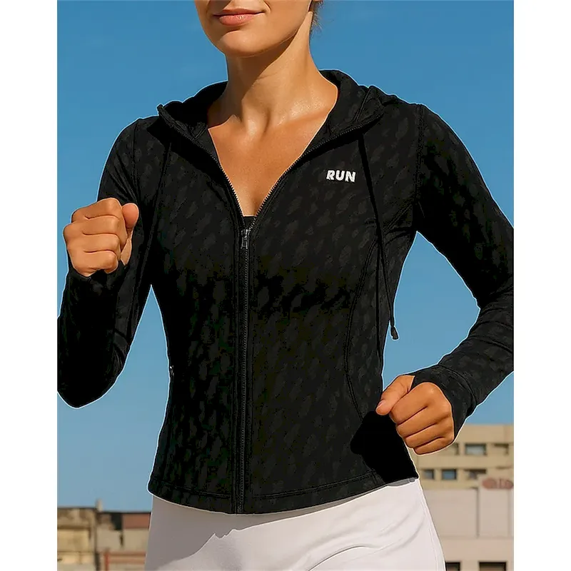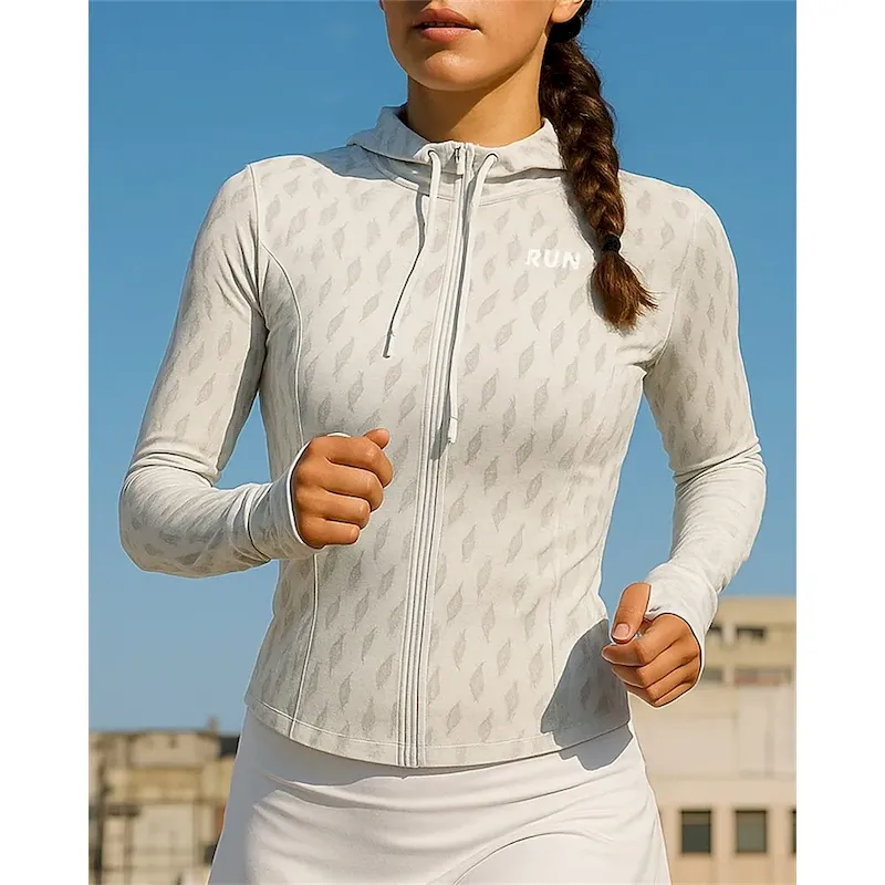 Women’s Running Top Running Shirt Full Zip Long Sleeve Top Graphic Sun Protection Lightweight Breathable Tennis Golf Running Sportswear Activewear Black White