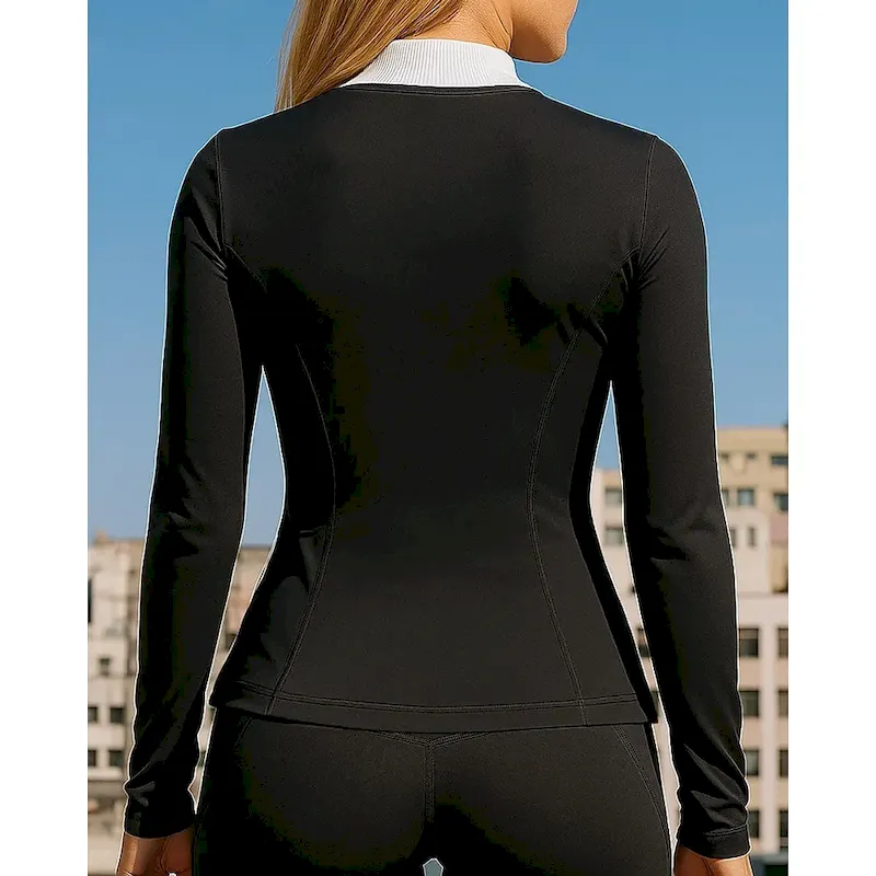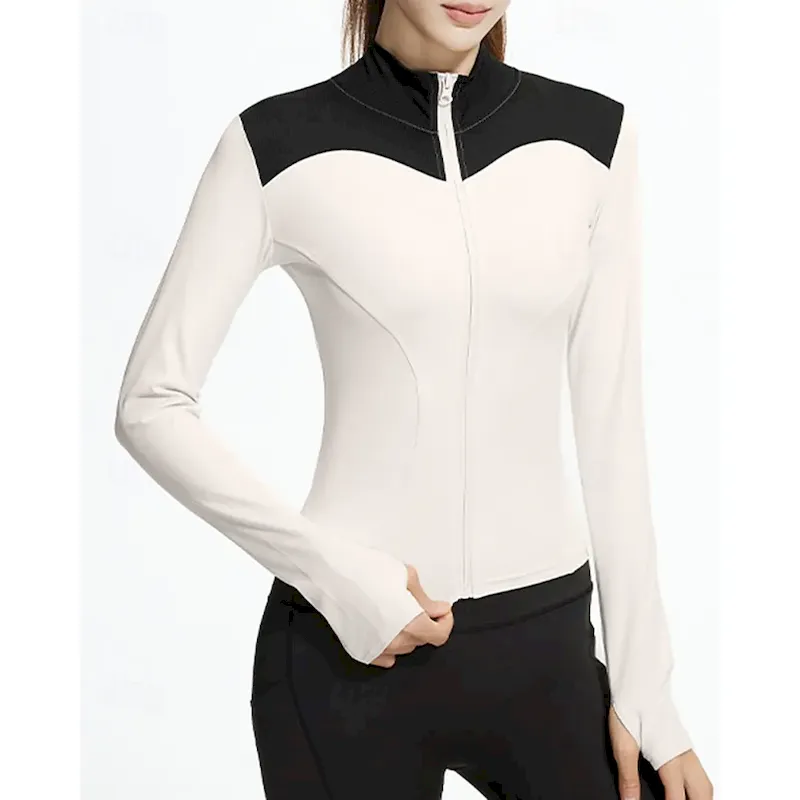 Women’s Running Top Sports Sweatshirt Long Sleeve Top Athleisure Patchwork Sun Protection Windproof Gym Outdoor Running Sportswear Activewear Black White